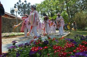 O pavilhão de exposições ão o ponto alto do passeio, as esculturas, cenários feitos com flores e frutas, encantam todos que passam por lá.